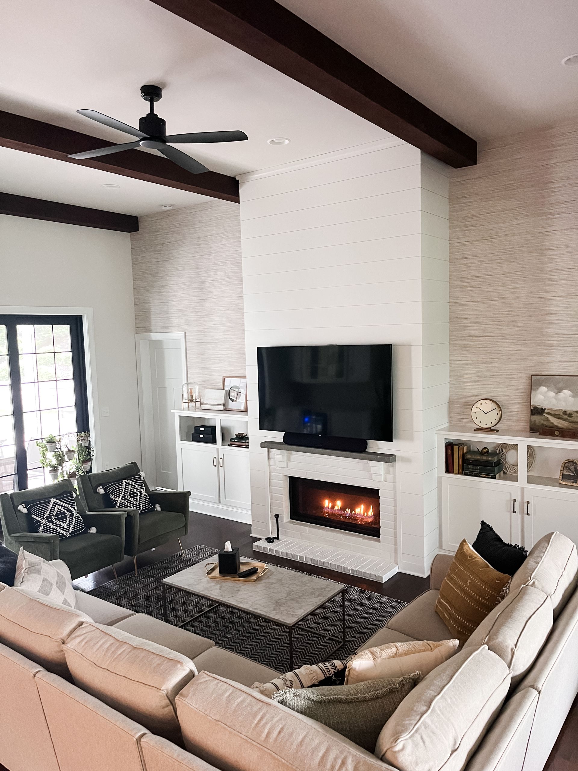 Building a new home is such an exciting endeavor. However, the reality is that often you are left with a lot of white walls and “builder-grade basics” throughout. Our homeowner had a strong sense of style and knew that she was ready to add her personal stamp on her gorgeous new home. But, as a busy professional and mom, she needed help unlocking her home’s full potential. Enter Haven Made. We helped make some massive changes by introducing new paint, bold wallpaper, and custom wall treatments, not to mention, adding in wood tones and lots of styling! Check out some of our favorite spaces below…