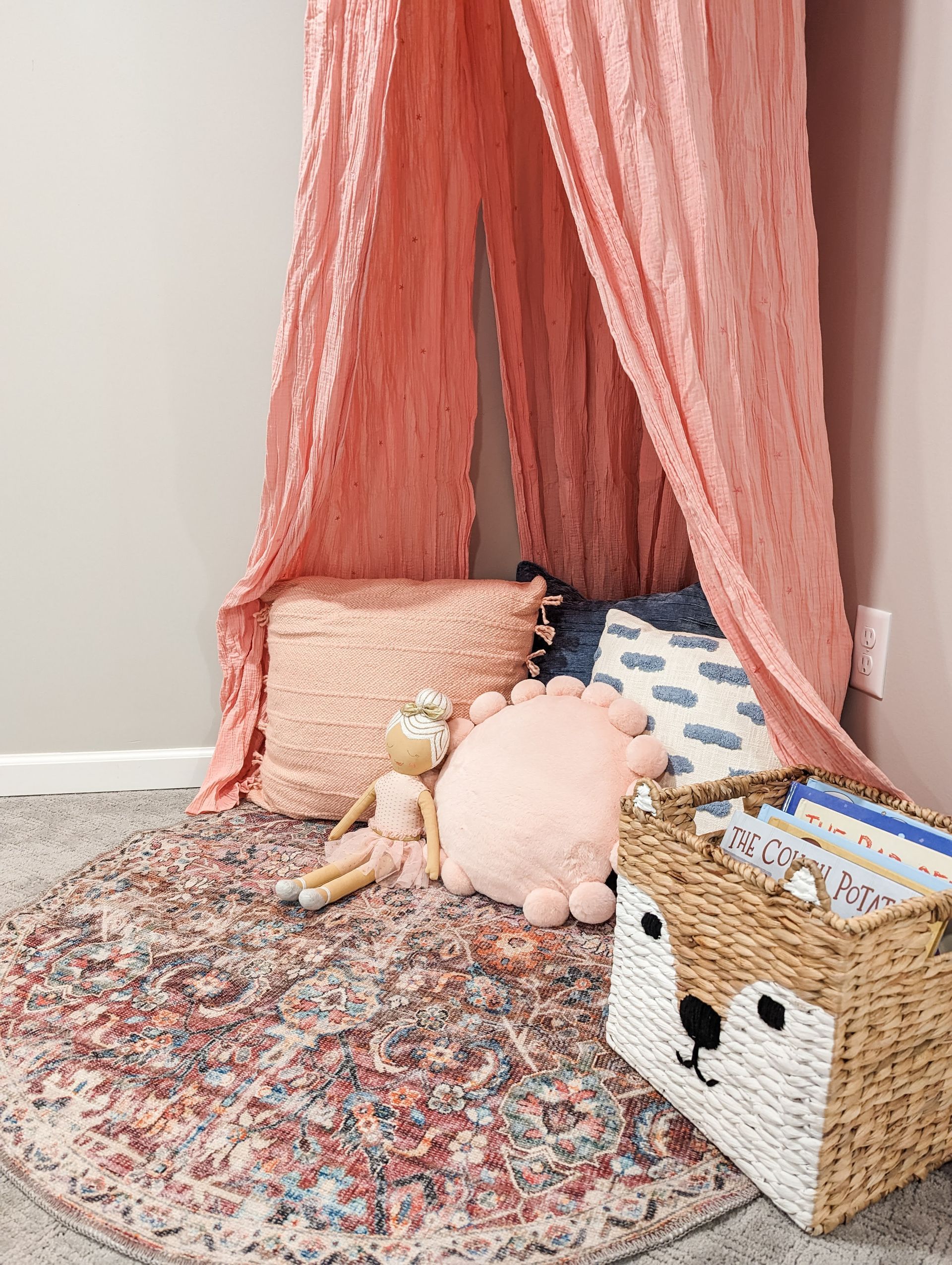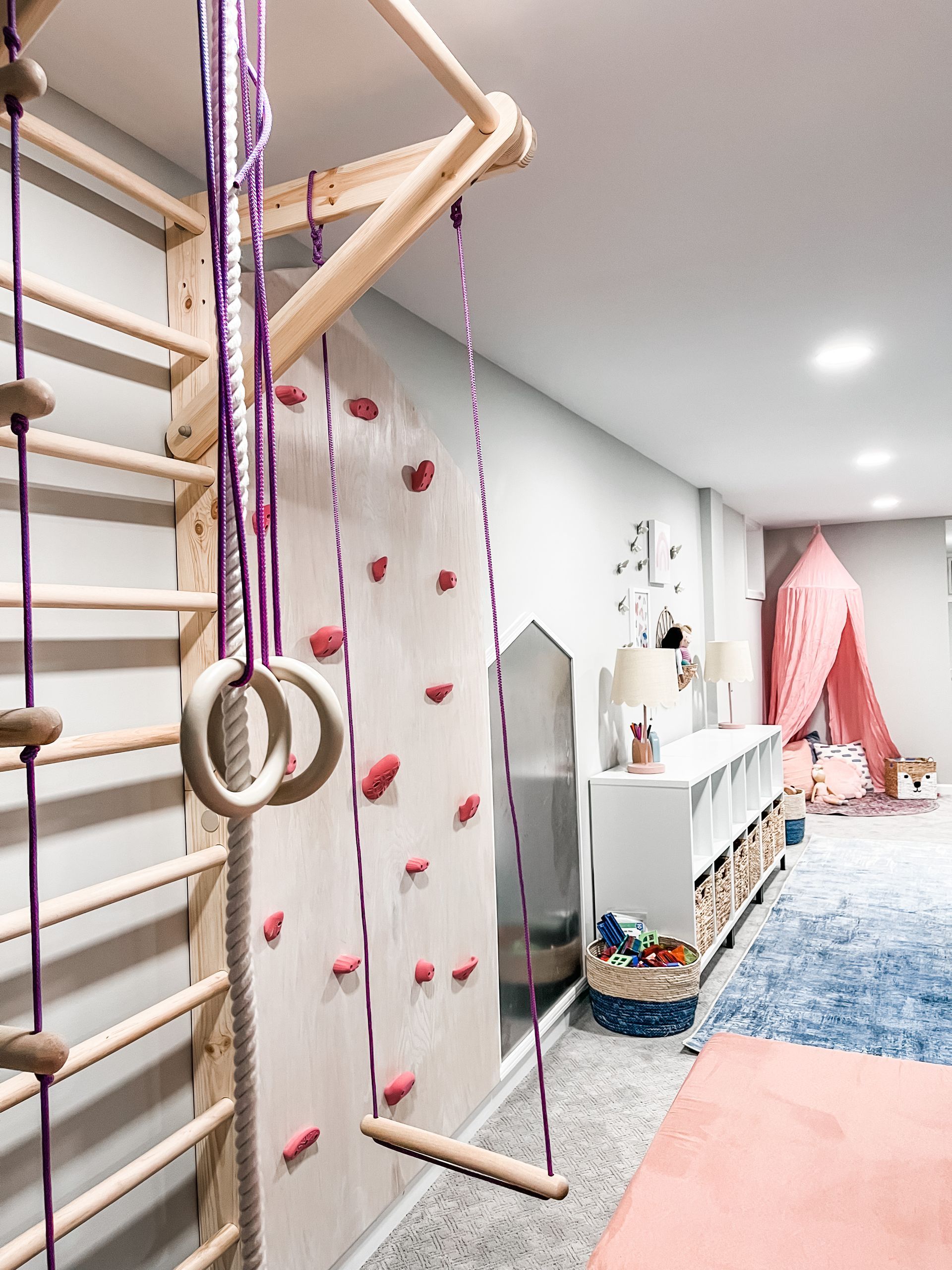 It's definitely not every day that a climbing wall is incorporated into our designs, but we are here for it! This play space was SO much fun to create. In addition to having toy storage, the goal was to create zones for our active, bug and makeup loving ‘lil client: