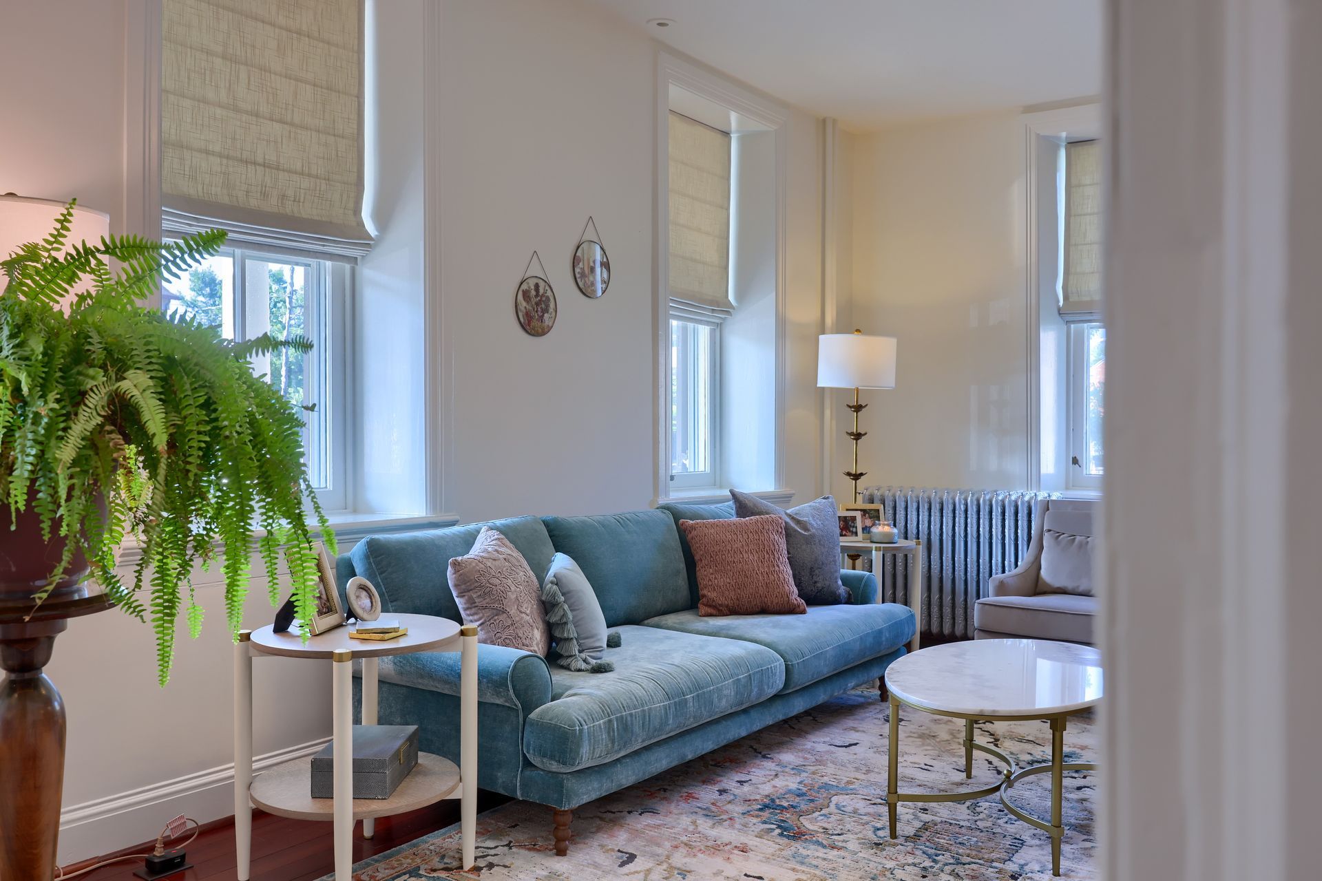 If this project has one message, it is "make your home your own." From the start this client was ready to do just that. She and her husband had recently moved into this gorgeous 1700's home and were anxious to put their stamp on it. She knew she liked traditional, eclectic, and boho styles and was looking to balance a light and airy feel with some punches of drama, color, and pattern. Her biggest challenge was working through the awkward shape of the living room to create an easy conversation space without blocking the flow of traffic to the dining room.